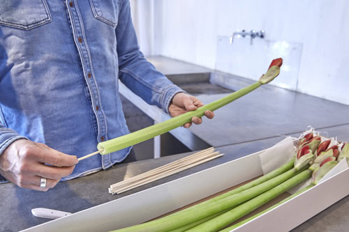 Of: laat de steel bewust langer en snijd de steel iets in zodat ze sierlijk kan krullen. Geef de bloemen de ruimte in een royale glazen vaas voor een natuurlijk, elegant effect.