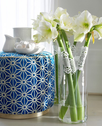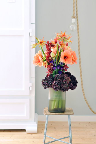 Of: laat de steel bewust langer en snijd de steel iets in zodat ze sierlijk kan krullen. Geef de bloemen de ruimte in een royale glazen vaas voor een natuurlijk, elegant effect.